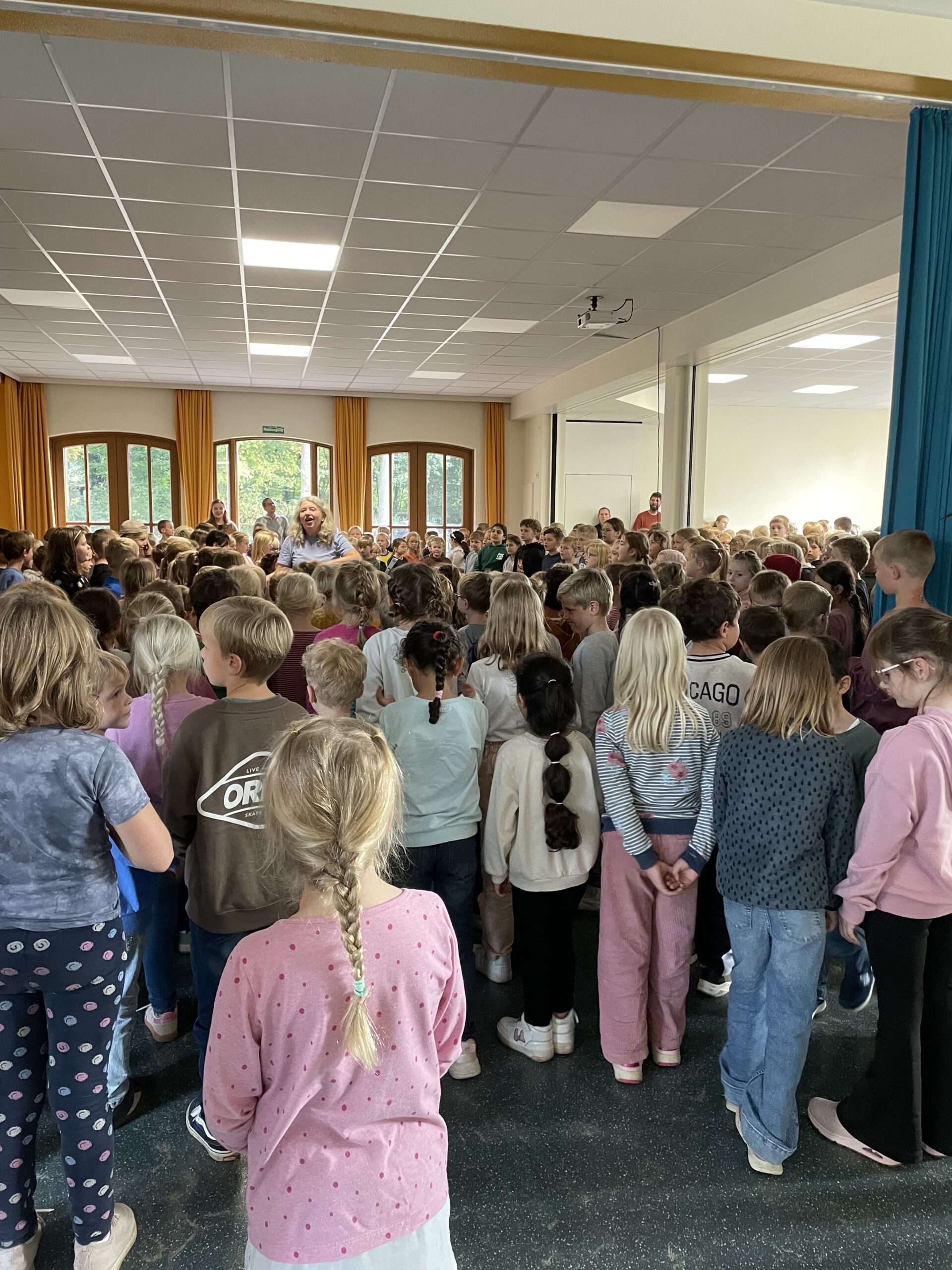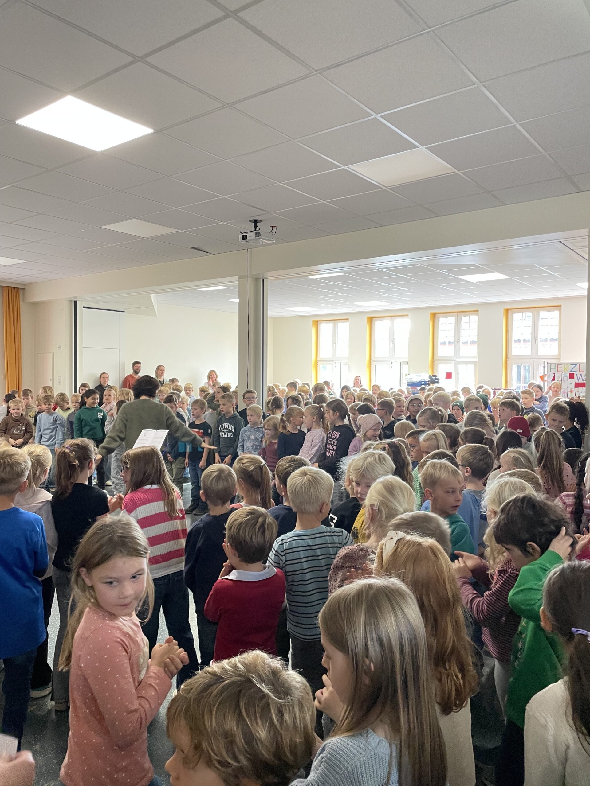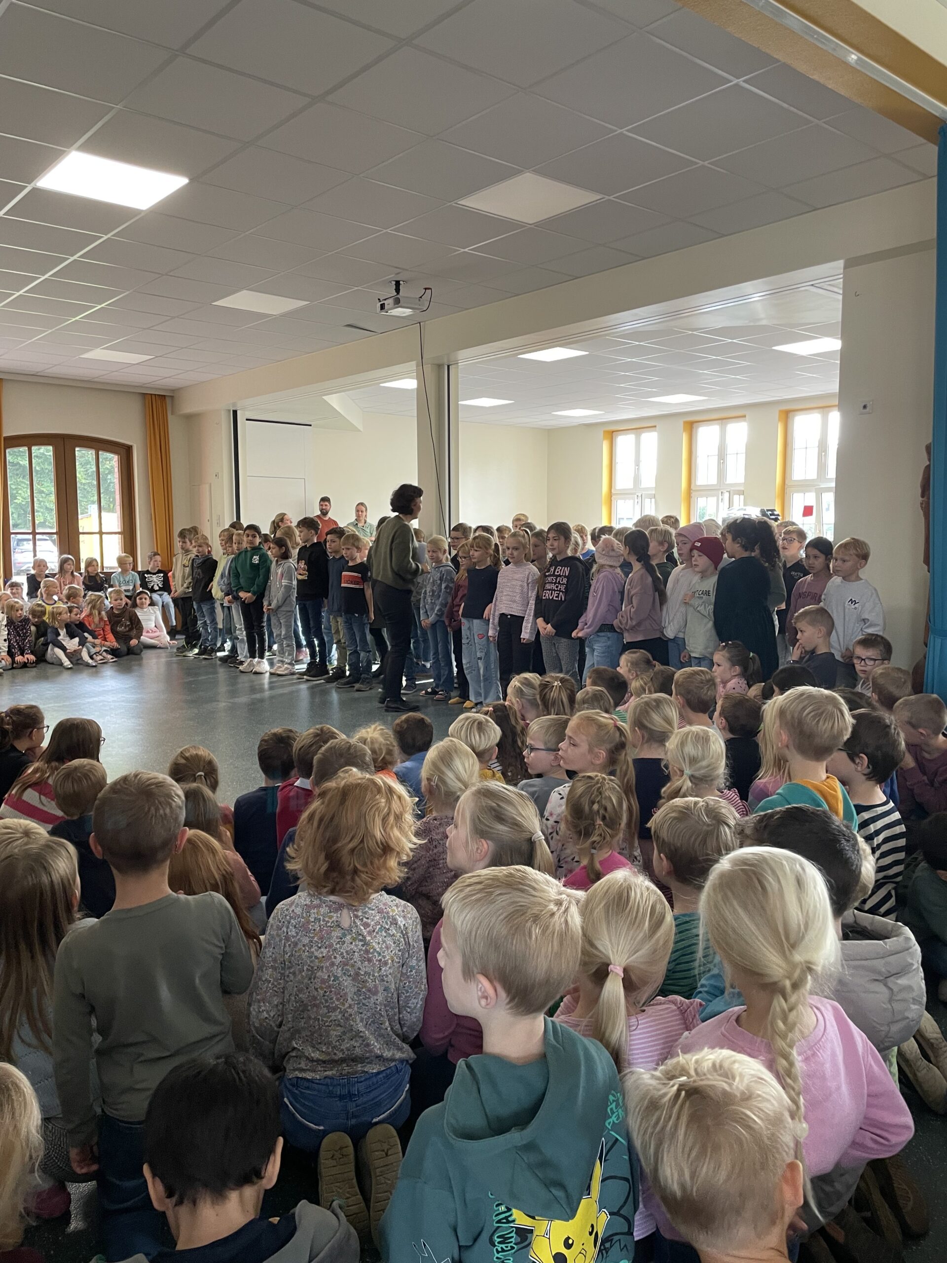 Heute in der 3. Stunde fand das traditionelle Herbstsingen mit allen Schülerinnen und Schülern in unserer Eingangshalle statt. Alle Kinder sind zusammengekommen um gemeinsam zu singen und die Jahreszeit musikalisch zu feiern.