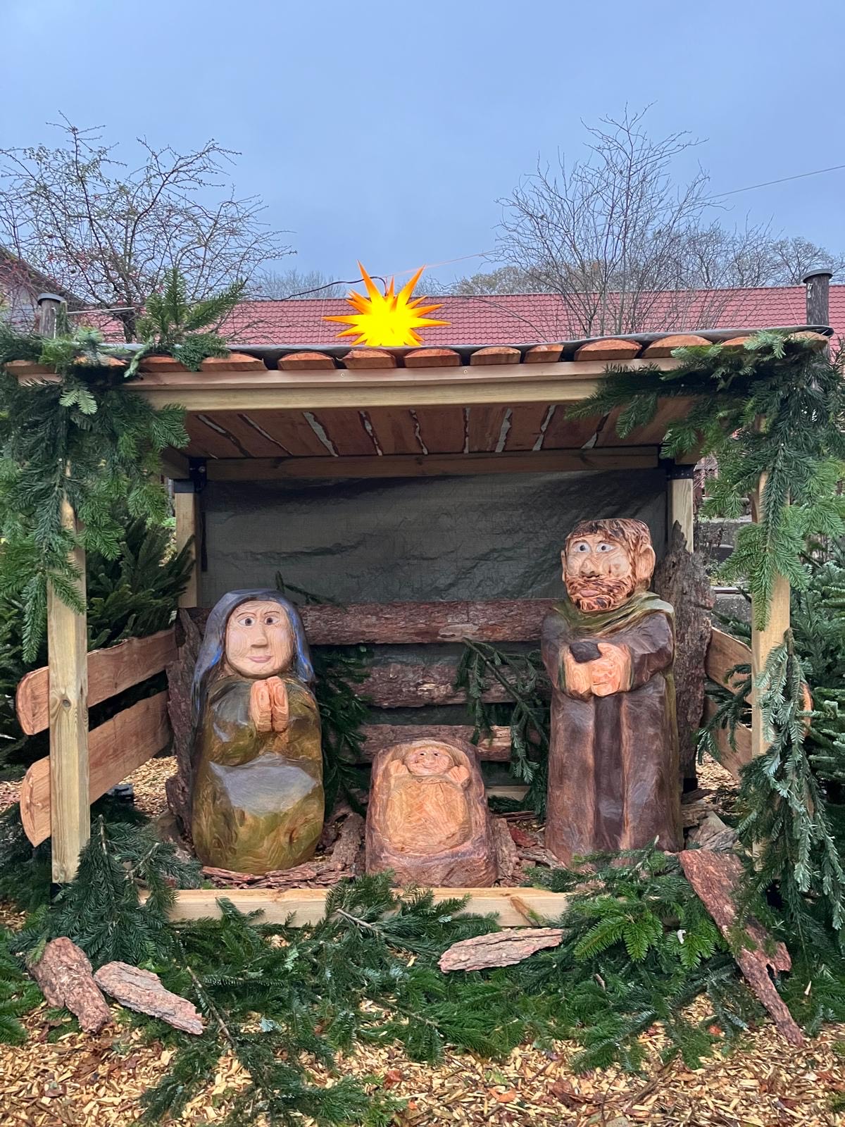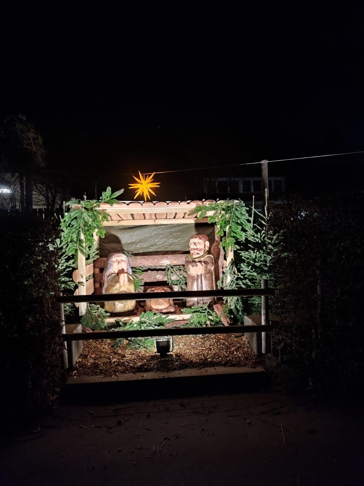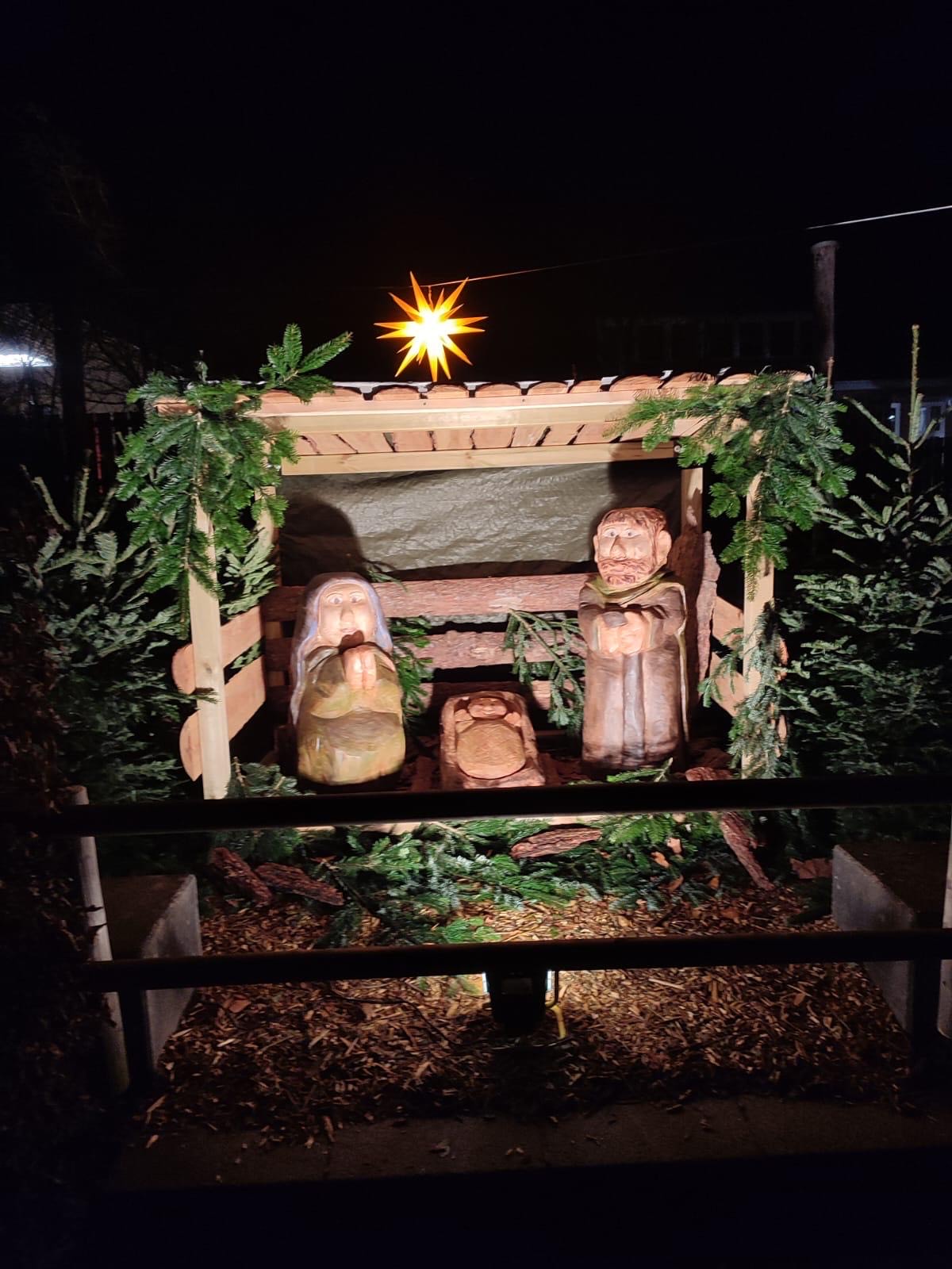 Auf unserem Schulhof wurde eine eigene Krippe aufgebaut! Viele Kinder haben schon neugierig geschaut und sich gefreut.